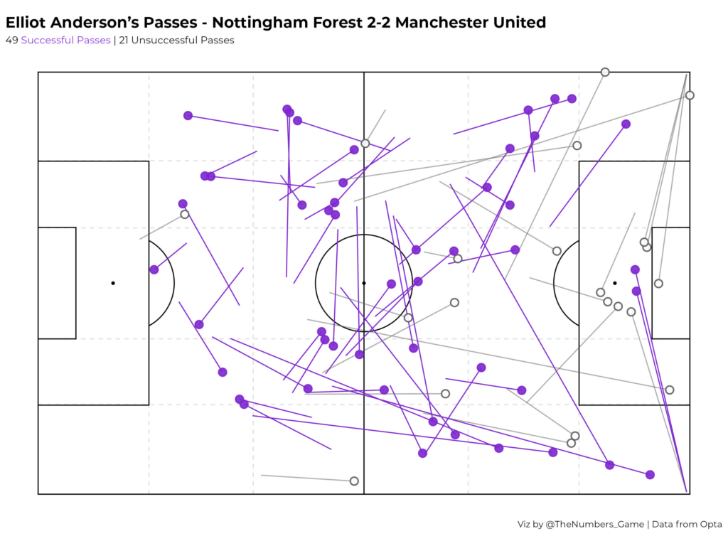 We can take a closer look at Elliot Anderson’s abilities in practise by zoning in on one particular game. Nottingham Forest recently held Manchester United to a 2-2 draw in what could have been seen as an audition for the midfielder, and if so, a callback should be expected.